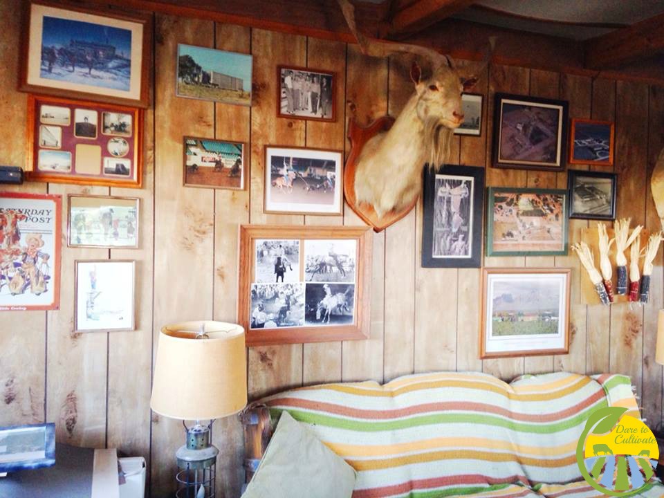 As a small child I spent much time out at our arena, the shop and grandGary’s old office. His hideout is a small room with one of the only working bathrooms on the property, a sink, pool table, desk and hundred year old couch with the lingering smell of cattle and dirt. Yes when you sit on it, the dirt rises up from the couch and dances in the sunlight. The entire room is layered with dust and the floor an awful green color of worn concrete. Sometimes in the winter we would watch my grandfather crack pecans as the wood splintered in the background inside the ancient furnace. In the summer’s we would peer out the window’s toward our tire swing to see grandGary inviting us outside to treat us to a watermelon. Little acts of love I will never forget from his tough exterior. The fridge with the hundred year old food but mostly medications and syringes to doctor cattle. The desk and walls lined with photographs, cartoons, drawings, magazine articles and wood and metal signs of all shapes and sizes my grandfather has collected over the years. I never really understood why he tacked up so many. As I’ve grown I’ve realized that this is his special spot. He want’s to showcase our family’s legacy and our family. Because he is proud of where we came from and how we have prospered.